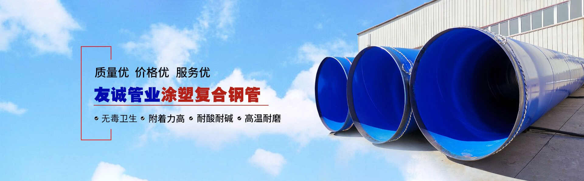 滄州友誠(chéng)管業(yè)有限公司是一家專業(yè)從事生產(chǎn)防腐涂塑管道及管件于一體的大型企業(yè)。公司注冊(cè)資金8600萬(wàn)元,位于中國(guó)管道生產(chǎn)基地—河北鹽山縣,近靠京滬高速、榮烏高速、黃石高速30公里,高鐵滄州西站40公里,天津國(guó)際機(jī)場(chǎng)、濟(jì)南遙墻機(jī)場(chǎng)150公里,為客戶來(lái)訪及業(yè)務(wù)發(fā)展提供了便利的交通條件。        鋼管系列:螺旋鋼管、無(wú)縫鋼管、ERW直縫焊管、JCOE埋弧焊直縫鋼管、熱鍍鋅鋼管。        涂塑系列:內(nèi)外涂塑鋼管、涂塑復(fù)合鋼…… 了解更多
